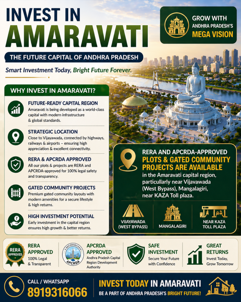 Purchased an APCRDA approved plot near Amaravati. Roads and drainage are already developed. Planning to start construction soon. Very happy with the service. β Lakshmi Priya, Vijayawada